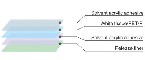 Acrylic được phủ đều trên cả hai mặt, sau đó được dát mỏng bằng lớp lót ban đầu. Nó có khả năng bám dính và giữ chắc chắn, hiệu quả liên kết tốt với các loại vật liệu khác nhau; thích hợp để đục lỗ, dán biển tên, màng công tắc và các phụ kiện ô tô có yêu cầu chống cháy.