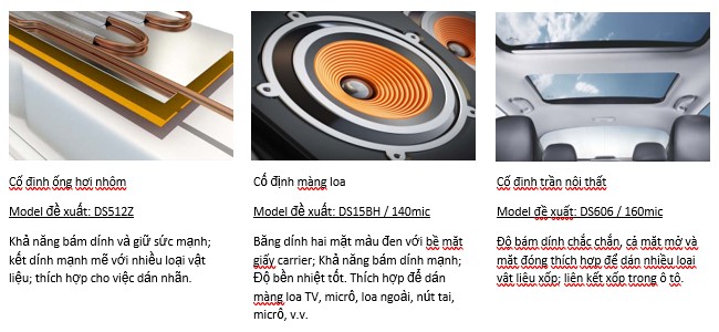 Sản phẩm này sử dụng chất liệu giấy làm carrier và chất kết dính acrylic được phủ đều trên cả hai mặt, sau đó được dán bằng lớp lót phát hành. Nó được sử dụng trong mục đích công nghiệp và được sử dụng rộng rãi trong các thiết bị gia dụng, ô tô, da, in ấn và đóng gói và các ngành sản xuất khác.