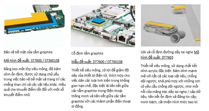 Acrylic được phủ đều trên một mặt hoặc hai mặt, sau đó được dát mỏng bằng màng giải phóng. Nó chủ yếu được sử dụng để kết dính các tấm than chì trong điện thoại thông minh.