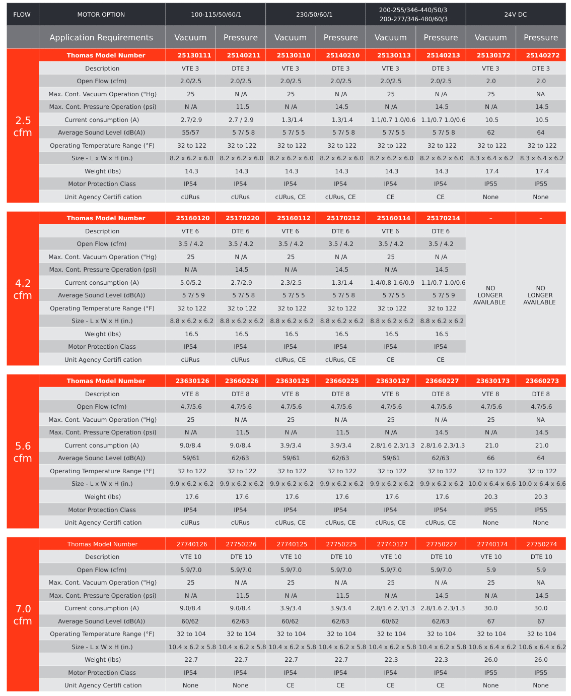 2.0 - 7.0 CFM( 70 - 198 LPM) ở 60Hz